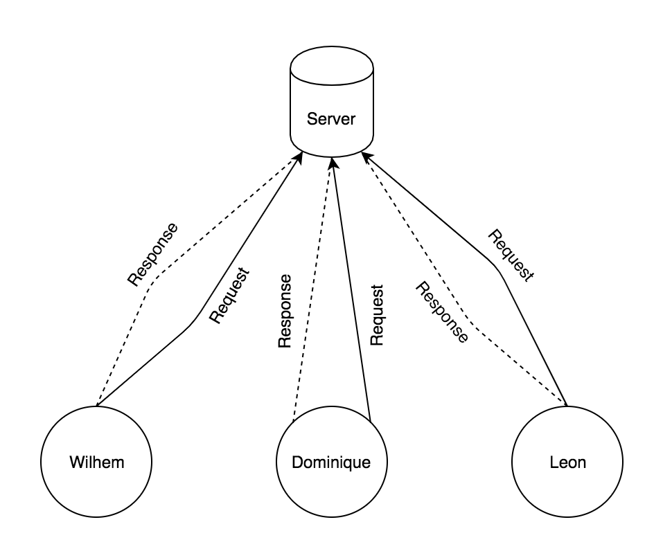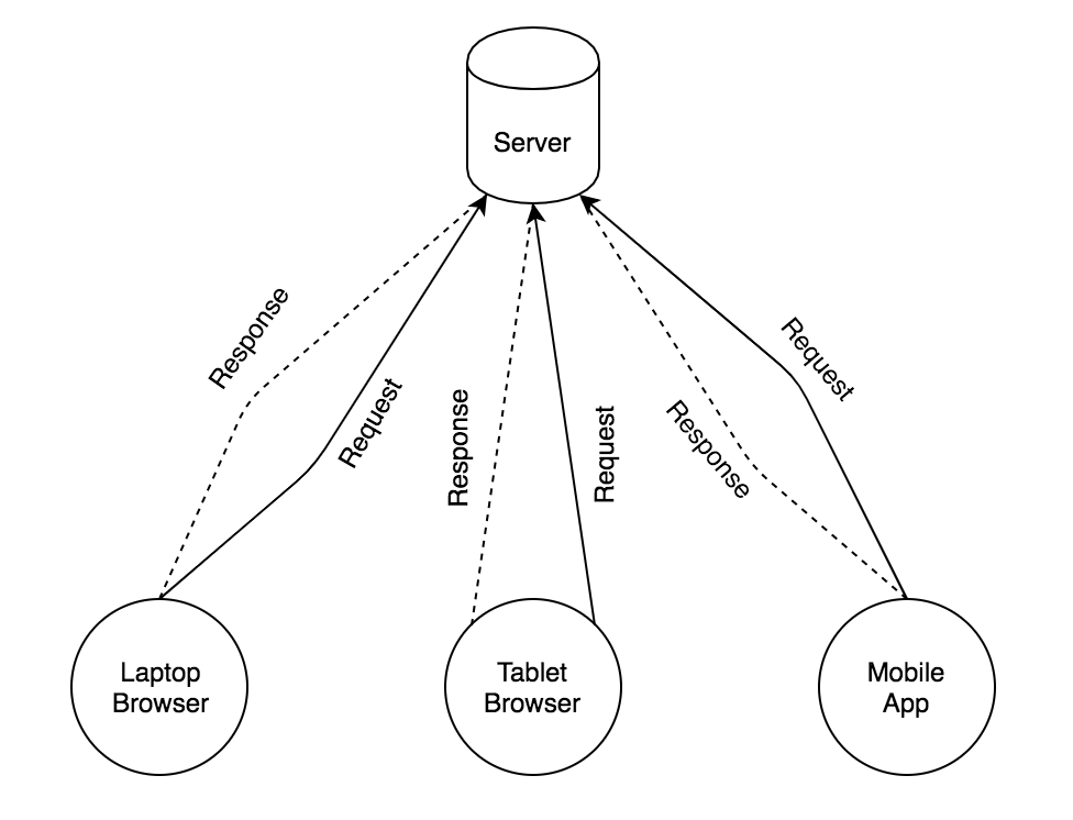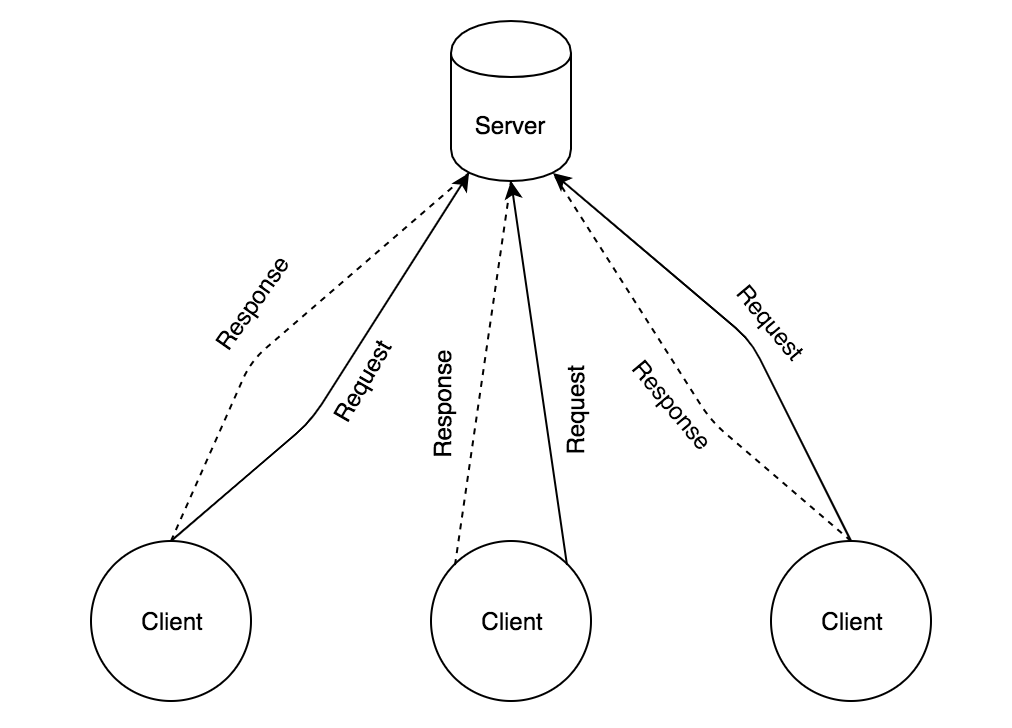 The server is responsible for processing data and sending data to the client. The client is responsible for presenting the data to the user.